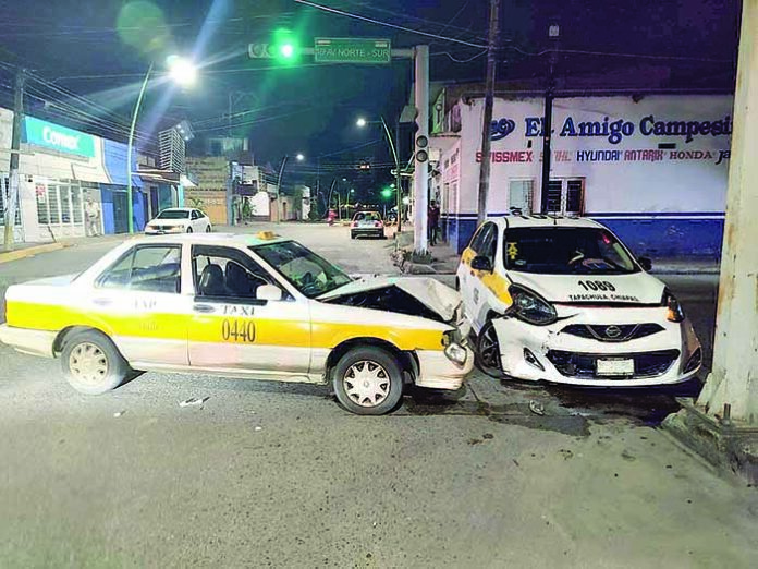 El perito de Tránsito del Estado, dio a conocer que se involucraron dos taxis locales y sus conductores aseguran que tenían la luz del semáforo en verde. La autoridad comenta que los semáforos están funcionando y alguno de los dos conductores miente.