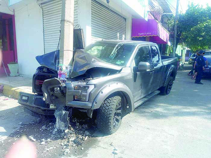 Los elementos tuvieron a la vista la camioneta impactada contra el poste de concreto, propiedad de la Comisión Federal de Electricidad, que a punto de caer.