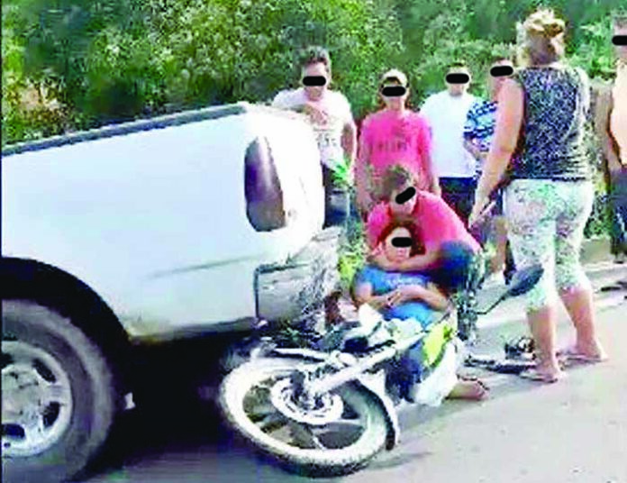 Villaflores, Chiapas; 3 de septiembre.- Un accidente carretero entre una camioneta y una motocicleta, dejó cuantiosos daños materiales y a una lesionada, en un hecho registrado en el tramo ubicado entre la vía que va de esta cabecera municipal hacia el campus V de la Universidad Autónoma de Chiapas (UNACH).