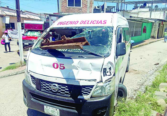 El riel quedó atravesado en la parte delantera del vidrio, el chofer de la combi quedó sorprendido por los daños causados en su combi, afortunadamente no se reportaron personas lesionadas sólo daños materiales de la unidad del transporte. EL ORBE/José Ángel López