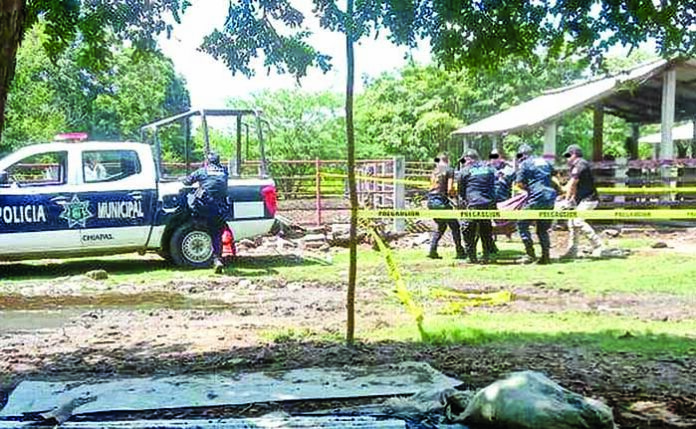 Acapetahua, Chiapas; 25 de septiembre.- Elementos de las diferentes corporaciones policiacas, aproximadamente a las 09:00 de la mañana acudieron a la ranchería Las Garzas, que se ubica en la zona baja del municipio, ya que se encontraba una persona sin vida.