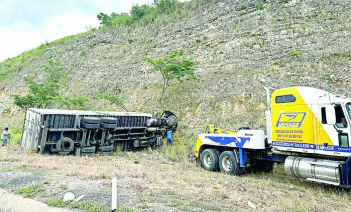 Se sabe que debido a la complejidad de este accidente, tuvieron que entrar dos unidades de la empresa de grúas, hasta que luego de varios minutos de una intensa labor, pudieron remolcar el camión para trasladarlo al corralón en turno. EL ORBE / Isabel Utrilla / Corresponsal