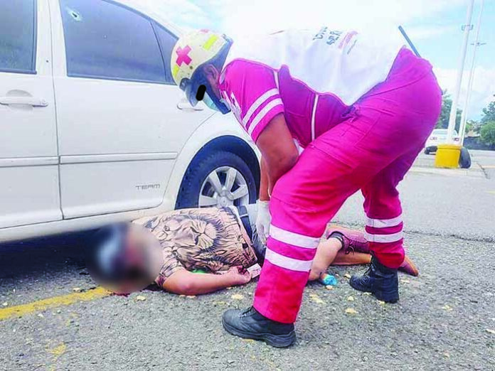 Paramédicos de la Cruz Roja Mexicana le brindaron los primeras atenciones a una persona del sexo masculino que se encontraba boca abajo sobre el pavimento, vestía un short de color gris, playera de color café, tenis de color café y llevaba puesta una gorra de color gris.