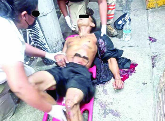 El herido, de sexo masculino y aproximadamente 35 años de edad, viste short y playera negra; se le aprecian 3 heridas de bala, una en el pecho, uno en el brazo y uno en el abdomen. Fue atendido y llevado al Hospital General de Tapachula, pero tres horas más tarde falleció.