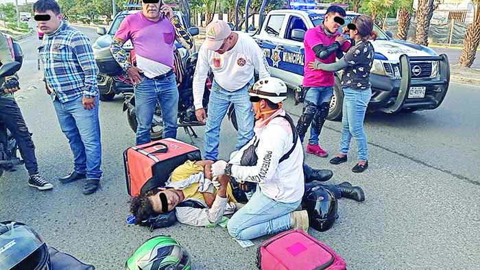 Del impacto, los dos motorrepartidores salieron proyectados contra la carpeta asfáltica. Derivado de la colisión, terminaron con múltiples lesiones en sus extremidades. Agentes de Tránsito y Vialidad Municipal solicitaron el apoyo de una unidad de emergencias y en minutos, arribaron paramédicos de Protección Civil Municipal.