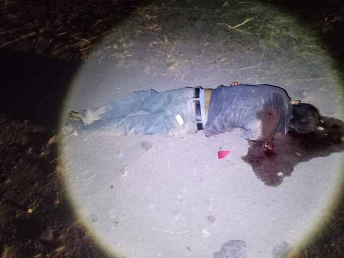 Aproximadamente las 20:15 horas de ayer se recibió el reporte de que había una persona sin vida en dicho lugar y de inmediato se trasladaron al lugar las diferentes corporaciones policiacas quienes al arribar tuvieron a la vista el cadáver de una persona del sexo masculino tirado sobre el camino de terracería, vistiendo un pantalón de mezclilla de color azul y playera color gris, con una edad aproximada de entre 25 y 28 años de edad, a quien en una inspección rápida se le aprecia una lesión en la espalda lado derecho provocada al parecer, por proyectil de arma de fuego. En las inmediaciones del lugar se localizaron dos casquillos percutidos del calibre 9mm.