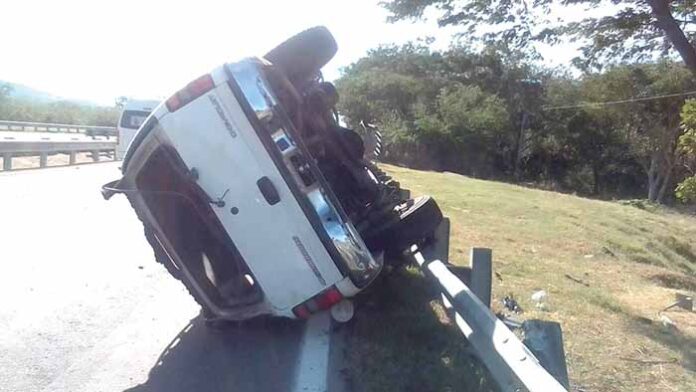 Tonalá, Chiapas; 14 de diciembre.- Aproximadamente a las 10:00 de la mañana, conductores que transitaban sobre el tramo carretero Federal Arriaga – Tonalá, indicaron que a la altura del kilómetro 56 + 200, como mayor referencia en la colonia Huizachal, sobre la carretera se encontraba volcada una camioneta Suburban y requerían la intervención y presencia de los elementos policiacos y de los cuerpos de rescate.