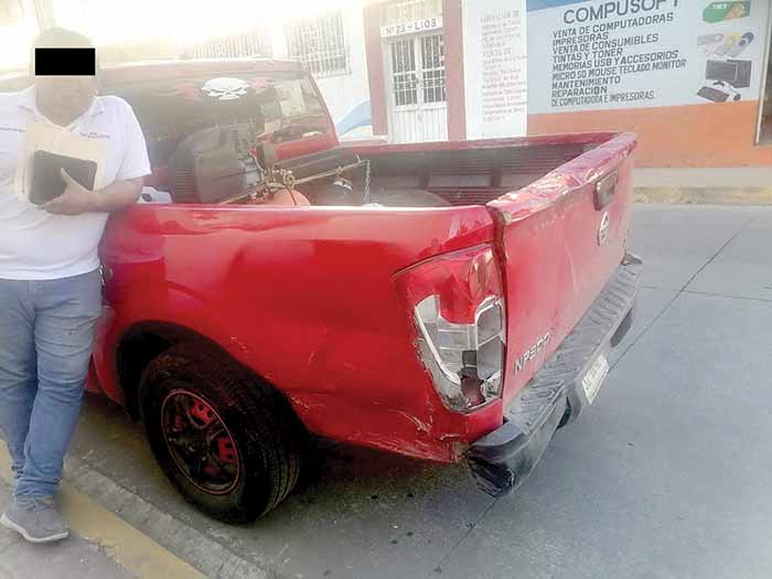 El percance se dio al llegar al cruce con la 6ª avenida sur y fue golpeada en la parte trasera por una camioneta General Motors Grove 5 de modelo reciente, con placas del estado, que era conducida por Mirna Viviana “N”, quien transitaba sobre la 6ª avenida sur.