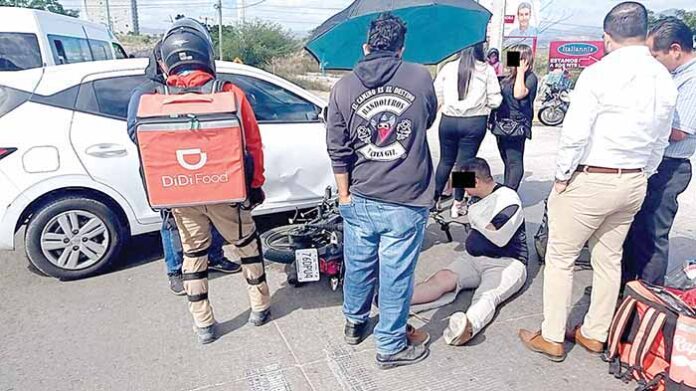 Tuxtla Gutiérrez, Chiapas; 14 de diciembre.- Un motorepartidor resultó malherido luego de estrellarse contra un automovilista sobre el Libramiento Sur a la altura de Home Depot. El reporte fue proporcionado alrededor de las 10:25 horas, cuando elementos de Tránsito y Vialidad Municipal arribaron al citado sitio sobre el carril de Oriente a Poniente.