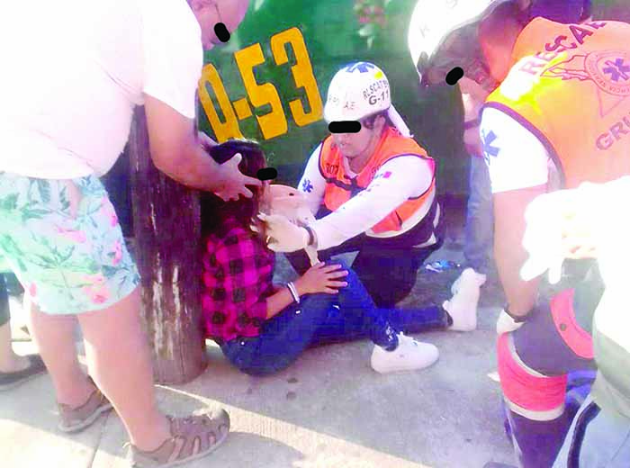 Transeúntes apoyaron a la herida y pidieron el apoyo de paramédicos, los del Grupo SAE atendieron a la víctima que presentaba dolor en la pierna y brazo; fue trasladada al Hospital General para su atención médica.