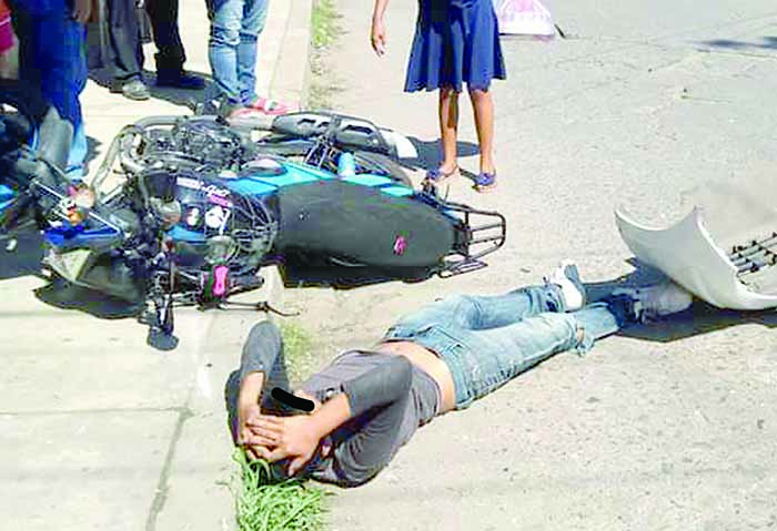 Huixtla, Chiapas; 7 de enero.- Habitantes de la avenida Rayón norte y calle Porfirio Díaz, reportaron a la delegación de Vialidad Municipal que en el lugar se había registrado un accidente automovilístico en el que se involucró una motocicleta conducida por un niño de edad de 13 años y un vehículo habilitado como taxi del sitio Superior.