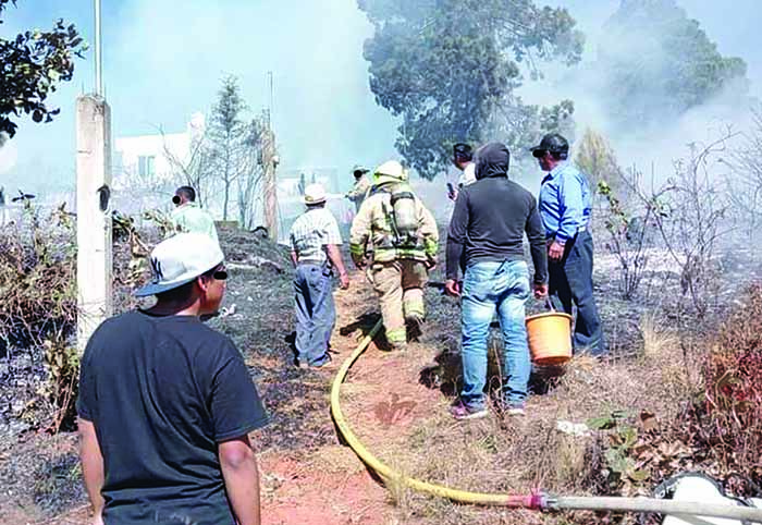 El fuego se extendió al pastizal de un terreno baldío, mismo que fue controlado por el personal de los grupos de auxilio.