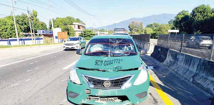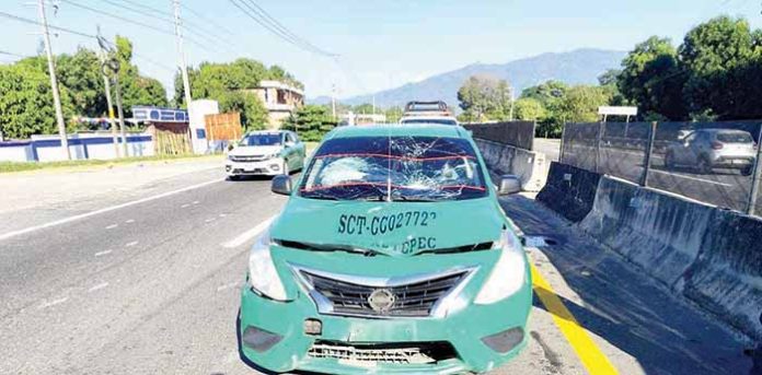 Tuzantán de Morelos, Chiapas; 12 de diciembre.- Conductores que transitaban sobre el tramo carretero Huixtla – Tapachula, reportaron al 911 emergencias que a la altura del entronque que conduce al ejido Xochiltepec – Tuzantán de Morelos, que conduce hacia la cabecera municipal y sobre la carretera costera, se encontraba un taxi foráneo del sitio Mapastepec – Tapachula; estaba seriamente dañado del frente.