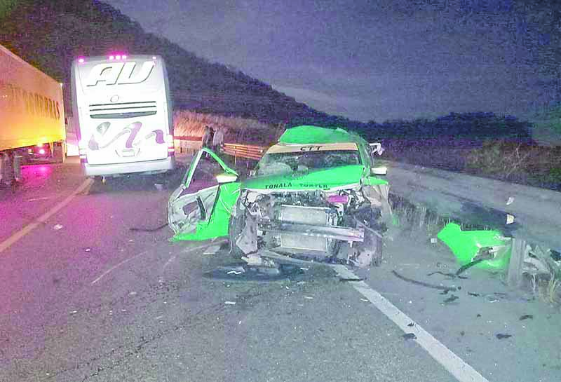 El caso se presentó la tarde de este domingo en la zona cercana al desvío de la comunidad El Tzu Tzu, en donde los involucrados fueron una unidad de transporte tipo taxi de la ruta que corre de Tuxtla a Tonalá y una unidad de transporte de la empresa AU, quienes se habrían impactado de frente tras salir de la curva.