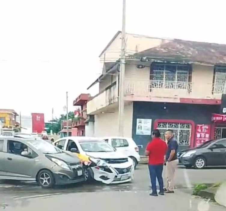 Tapachula, Chiapas; 08 de Julio.- Daños materiales fue el resultado de un accidente automovilísticoque se registró a la altura de la 11 Avenida Sur y 26 Calle Oriente, lugar donde colisionaron un vehículo habilitado como taxi local y un vehículo particular de color gris, este accidente fue reportado al personal de guardia del 911 Emergencias C-5 Escudo Urbano de Tapachula.