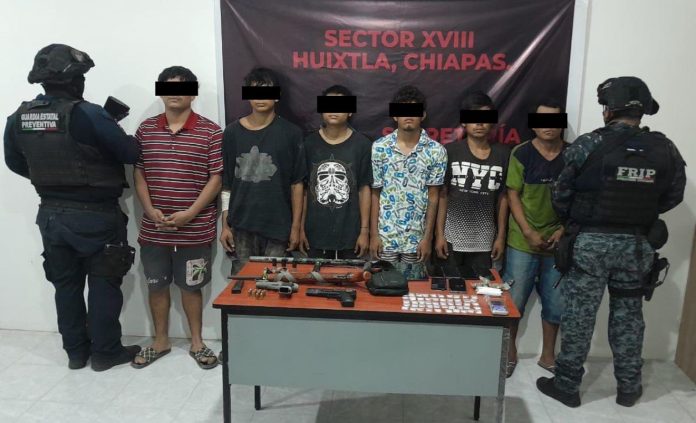 Derivado de los trabajos de inteligencia policial desplegados en la zona del municipio de Huixtla, elementos de la fuerza de seguridad detuvieron a siete presuntos integrantes de banda denominada “Los Chiquis”, en las colonias Bella Vista y El Relicario.