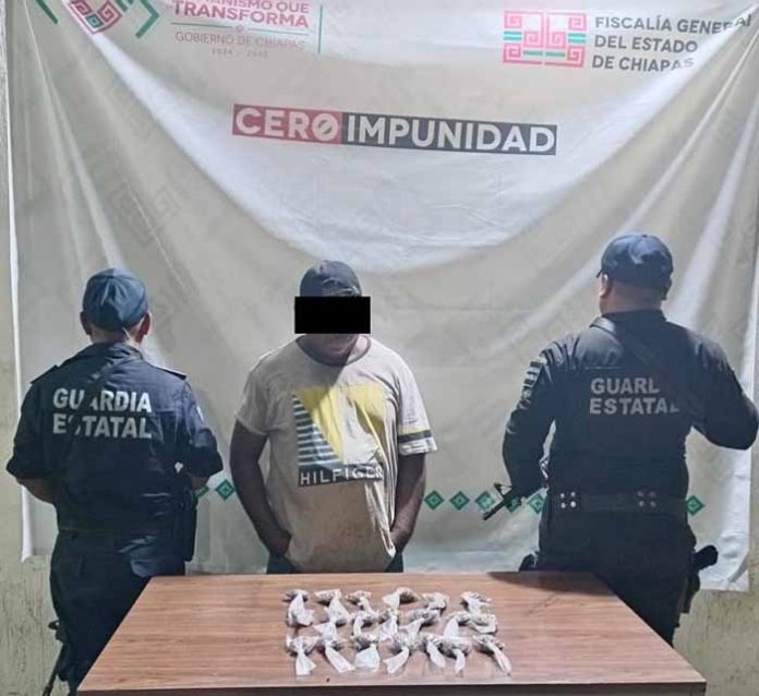 La Secretaría de Seguridad del Pueblo (SSP) a través de la Guardia Estatal Preventiva, en coordinación con la Fiscalía General del Estado (FGE) y la Secretaría de Seguridad y Protección Ciudadana (SSPC) del Gobierno Federal, detuvieron a presunto narcomenudista, en el municipio de Tapachula.