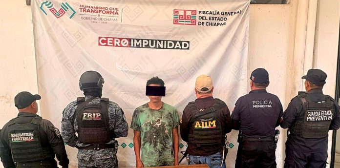 La Secretaría de Seguridad del Pueblo (SSP) a través de la Fuerza de Reacción Inmediata Pakal (FRIP), de la Guardia Estatal Preventiva y la Guardia Estatal Fronteriza, en coordinación con la Agencia de Investigación e Inteligencia Ministerial (AIIM) de la Fiscalía General del Estado (FGE), la Secretaría de Seguridad y Protección Ciudadana (SSPC) del Gobierno Federal y la Policía Municipal, detuvieron a un masculino por el probable delito contra la salud en el municipio de Ciudad Hidalgo.