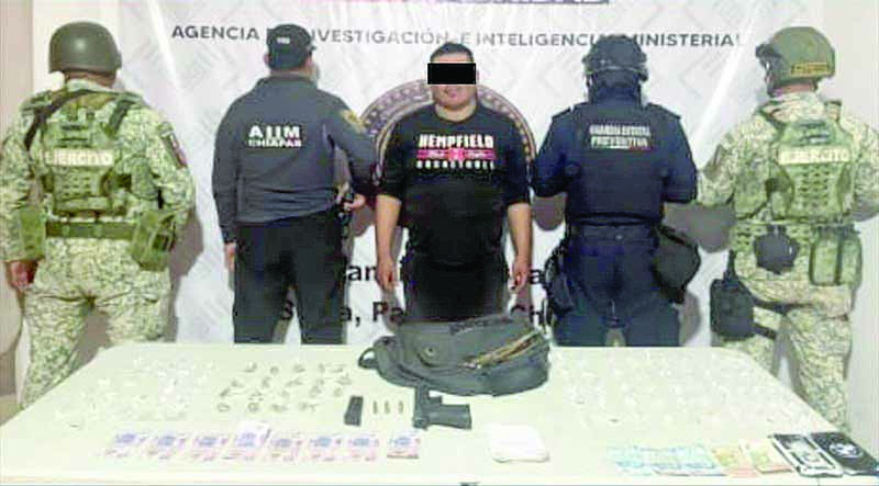 Catazajá, Chiapas; 18 de enero.- El Grupo Interinstitucional, conformado por la Fiscalía General del Estado, Secretaría de la Defensa Nacional, Secretaría de Seguridad del Pueblo y Fuerza de Reacción Inmediata Pakal, detuvo en flagrancia a Atilano “N”, como presunto responsable de los delitos contra la salud y portación de arma de fuego sin licencia, por hechos ocurridos en el municipio de Catazajá.