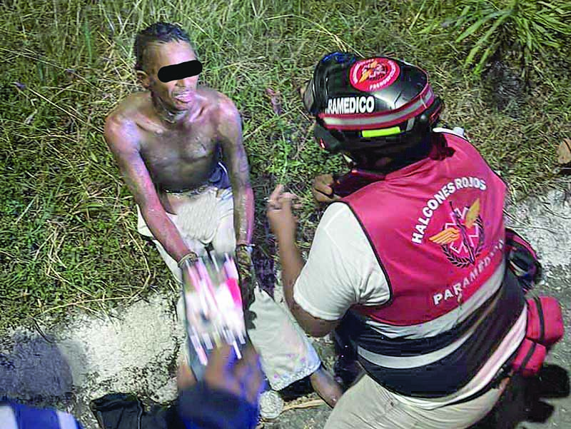 Paramédicos del Grupo SAE, encontraron al herido sentado sobre la cinta asfáltica, aún consciente pero con quemaduras en el 60% de su superficie corporal. Después de estabilizarlo, fue trasladado de urgencia a un Hospital General de Tapachula, para recibir atención médica especializada.