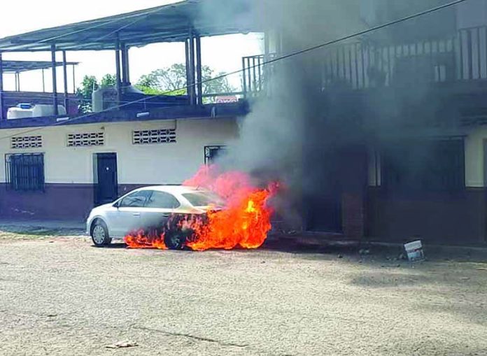 Tapachula, Chiapas; 6 de febrero.- Momentos de terror se vivieron en las inmediaciones de la colonia 5 de Febrero, luego de que un automóvil particular estallara en llamas frente a la escuela normal “Fray Matías de Córdova”. El conductor, un conocido docente de la institución, logró salir ileso antes de que la unidad fuera consumida por el fuego.