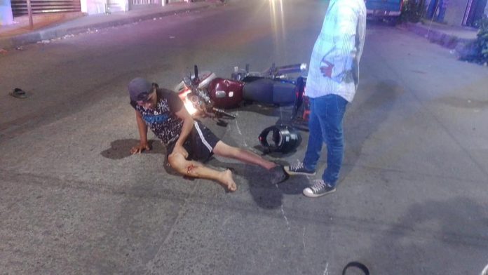 Tapachula, Chiapas a 7 de febrero 2026.— Un motociclista resultó gravemente lesionado la noche de este sábado luego de verse involucrado en un accidente vial al no respetar la vía preferencial, en el cruce de la 28ª Calle Oriente y 9ª Privada Sur, al oriente de la ciudad.