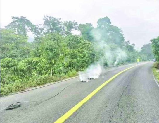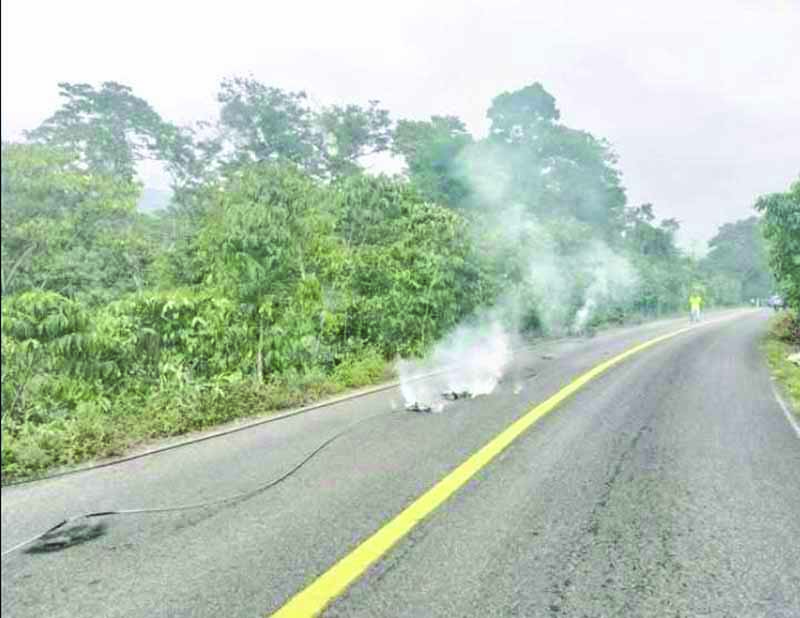 Cacahoatán, Chiapas, 09 de febrero.- Una verdadera “trampa mortal” se activó el pasado lunes 9 de febrero, en el tramo carretero Unión Juárez–Cacahoatán, cuando cables de alta tensión cayeron sobre la cinta asfáltica, obligando a las autoridades a cerrar por completo la circulación por algunos minutos.