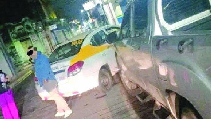 Tapachula, Chiapas; 9 de febrero.- Una madrugada de pánico vivieron automovilistas y trabajadores del volante, luego de que el conductor de una camioneta Chevrolet S-10 de color gris, protagonizara una serie de colisiones en cadena e intentara darse a la fuga. Al final terminó acorralado por un grupo de taxistas.
