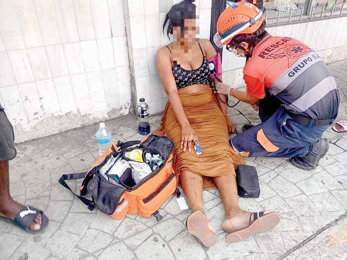 Canalizaron el auxilio a los rescatistas del Grupo SAE, que se trasladaron al lugar y encontraron a la joven sentada en la banqueta; la afectada manifestó un intenso dolor en el estómago.