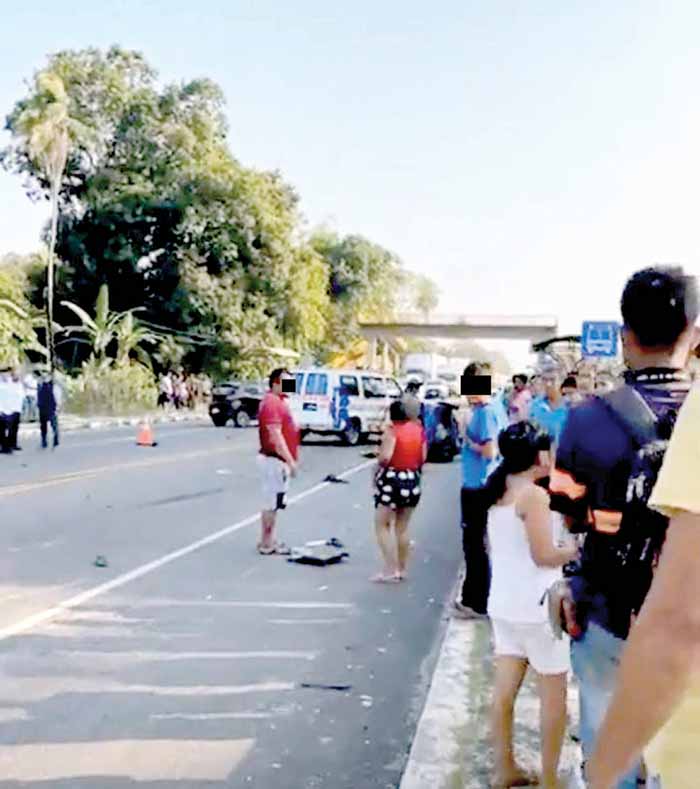Uniformados de las diferentes corporaciones policiacas y personal de la empresa Azvy Cointer México Delegación Tapachula, encargados del mantenimiento de la carretera, interpondrán su formal denuncia en contra del responsable de este accidente.