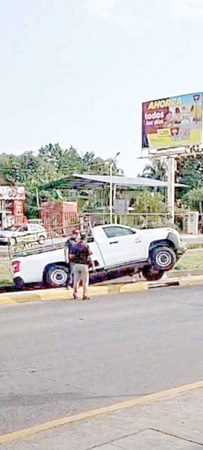 Tapachula, Chiapas; 5 de marzo.- Un aparatoso incidente automovilístico estuvo a punto de registrarse sobre la 7ª Sur del Par Vial, metros antes de llegar a la calle conocida como la del Internado, luego de que una camioneta tipo Pick Up de color blanco, perteneciente a una empresa privada, quedara al borde del dren pluvial.