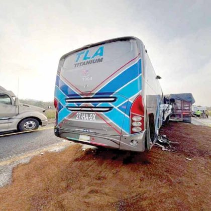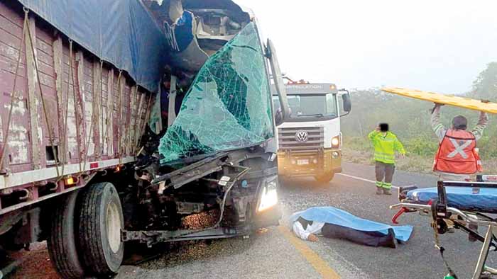 Pero fue a la altura del kilómetro 184+900 donde la unidad de pasaje se estrelló por alcance contra un tráiler Kenworth doble remolque que tenía el mismo destino que el carro de pasaje. Al parecer fue el exceso de velocidad lo que provocó que el camión pasajero se estampara por alcance en la carrocería del mastodonte.