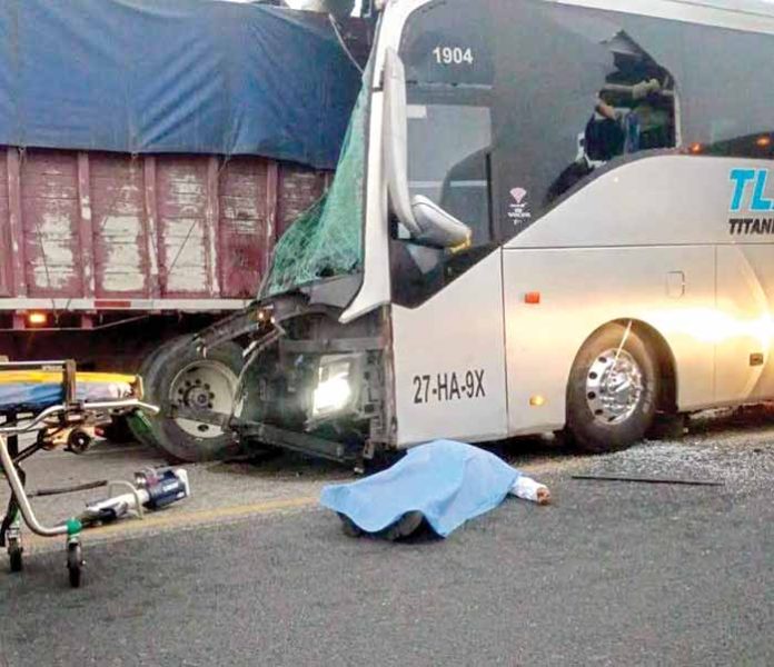Ocozocoautla, Chiapas; 5 de marzo.- Eran las 06:00 de la mañana del jueves, cuando se registró un trágico accidente, un autobús de pasajeros se estrelló atrás de una pesada unidad que aparentemente iba a vuelta de rueda en la autopista Las Choapas-Ocozocoautla, al menos dos personas fallecieron en el lugar.