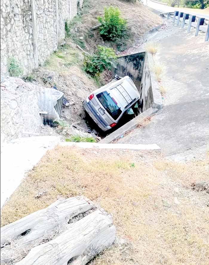 *La Unidad Ford Cayó en una Cuneta Después del Choque