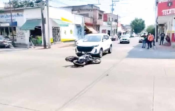 Tapachula, Chiapas; 11 de marzo.- La falta de precaución y el nulo respeto a los señalamientos viales, provocaron un accidente de tránsito la tarde del pasado miércoles en el corazón de la ciudad. Dejando como saldo únicamente daños materiales y un gran susto para un joven trabajador.