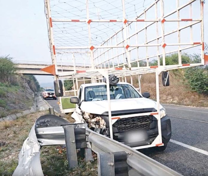 Ocozocoautla, Chiapas; 18 de abril.- Un percance vehicular generó movilización en la autopista Arriaga–Ocozocoautla, luego de que una camioneta se impactara contra la barra de contención.
