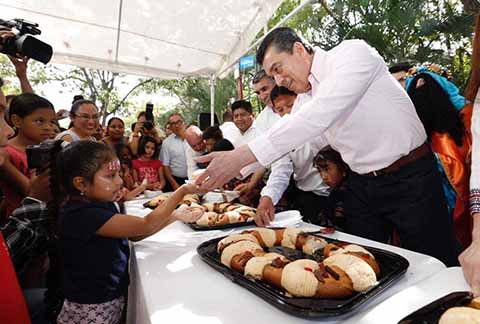 El Gobernador partió la tradicional Rosca de Reyes y entregó juguetes a niñas y niños