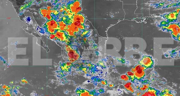 México.- El pronóstico para las próximas horas y la madrugada de mañana es de lluvias intensas en Sonora; muy fuertes en Chihuahua, Sinaloa, Jalisco, Colima, Michoacán, Guerrero, Oaxaca y Veracruz, y lluvias fuertes en Coahuila, Nuevo León, Tamaulipas, Durango, Nayarit, Estado de México, Ciudad de México, Chiapas, Tabasco y Campeche. Las precipitaciones podrían ser con descargas eléctricas, rachas de viento y posible granizo.