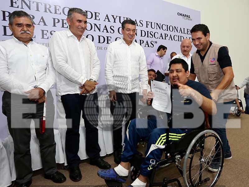 Tuxtla Gutiérrez.- mEn busca de mejorar las condiciones de vida y favorecer la inclusión social, el gobernador Rutilio Escandón Cadenas entregó lentes, sillas de ruedas, bastones, carriolas y auxiliares auditivos a más de mil 200 personas con algún tipo de discapacidad de los municipios de Berriozábal, Chiapa de Corzo, Suchiapa, Jiquipilas, Ocozocoautla y Tuxtla Gutiérrez.