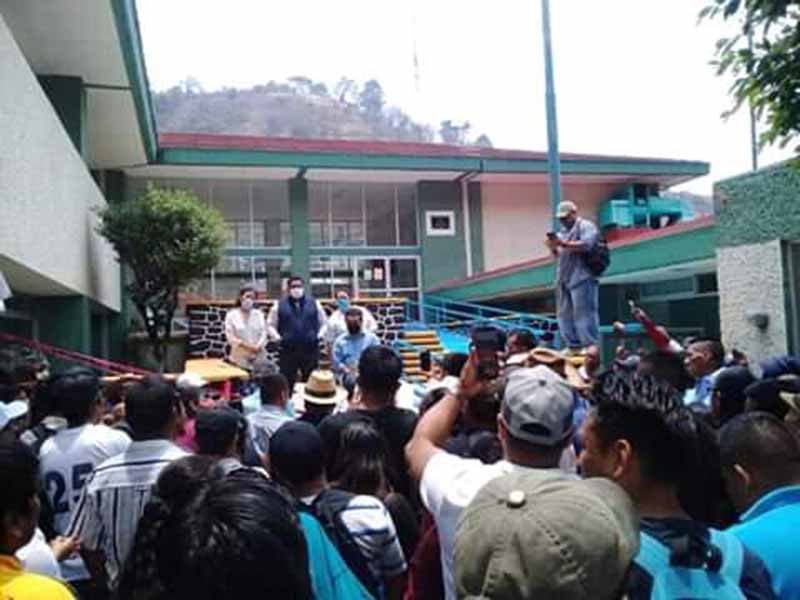 Motozintla, Chiapas; 5 de Mayo.- Más de 300 personas adheridas al sindicato de la CROC y otras organizaciones, movidas por las versiones dadas a conocer que se desprenden de que en el Instituto Mexicano del Seguro Social han muerto personas infectadas por Coronavirus, Covid-19, y que ni la sociedad motozintleca ni los mismos trabajadores adheridos al IMSS cuentan con la información necesaria.