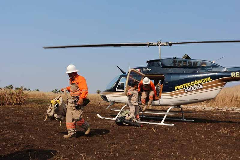 Para el combate se utilizan tres unidades pick up, una unidad de ataque rápido, un helicóptero Bell 206 XC-AAL y una pipa de combustible, estos últimos de la Dirección de Rescate Aéreo de Protección Civil Halcones de Chiapas.