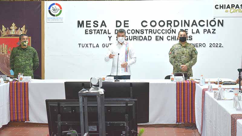 Tuxtla Gutiérrez, Chiapas.- Derivado de las estrategias en materia de prevención y combate de conductas delictivas, en las últimas 48 horas Chiapas registró saldo blanco en delitos de alto impacto, tales como homicidio doloso, secuestro y feminicidio, informó el gobernador Rutilio Escandón Cadenas en la Mesa de Seguridad Estatal.