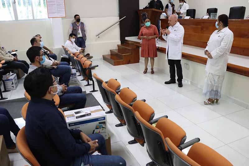 En el marco de esta reunión de trabajo, el secretario de Salud del estado hizo entrega de equipo tecnológico para fortalecer el manejo de la información en las plataformas de vigilancia epidemiológica.
