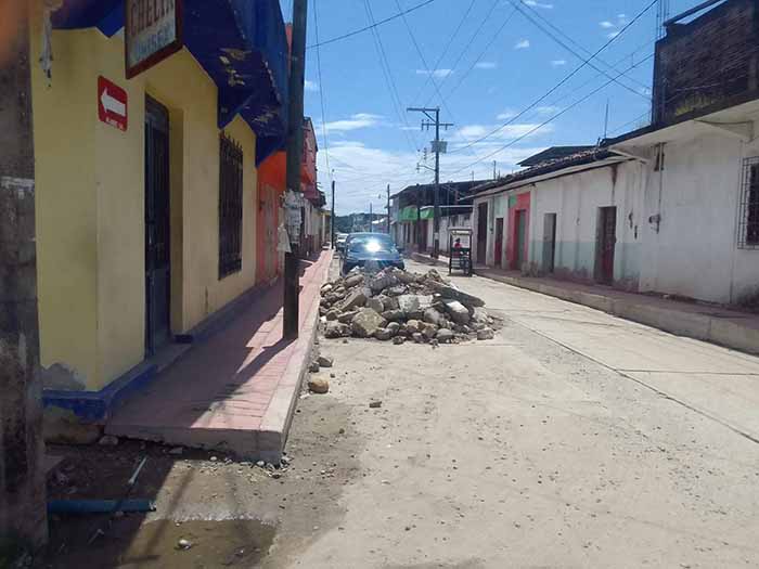 Huixtla, Chiapas; 9 de Octubre de 2022.- Luego de pavimentar la Avenida Juárez, trabajadores de la construcción dejaron escombros tirado en medio de la calle, lo que ocasionaría algún accidente vehicular.