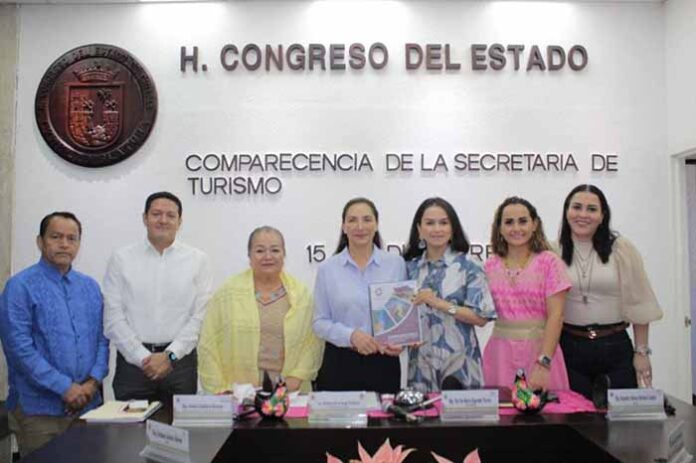 Tuxtla Gutiérrez, Chiapas; 15 de diciembre de 2022.- Como parte de la Glosa por el Cuarto Informe de Gobierno, el Congreso del Estado a través de la Comisión de Turismo que preside la diputada Flor Esponda Torres recibió la comparecencia de la secretaria de Turismo, Katyna De la Vega Grajales, para exponer el estado que guarda la dependencia a su cargo.