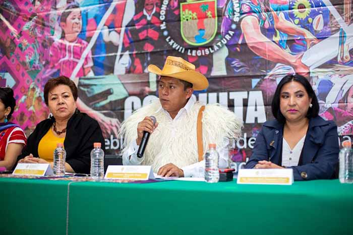 Por su parte, el diputado Cuauhtémoc Hernández Gómez, presidente de la Comisión de Comunidades y Pueblos Indígenas, abrió la Consulta, y correspondió a la diputada María Luisa López Sánchez dar lectura al orden del día, donde se enumeraron los puntos a tocar y analizar en este proceso.