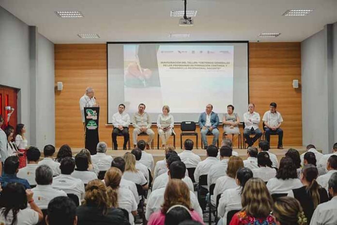 Con la finalidad de trabajar de manera conjunta en apoyo y asesorías de diseño de programas estatales de formación continua docente, autoridades de Educación Media Superior en Chiapas y la Comisión Nacional para la Mejor Continua de la Educación (MEJOREDU), iniciaron el Taller «Criterios general de los programas de formación continua y desarrollo profesional docente», que se realizará del 5 al 7 de junio del presente año.