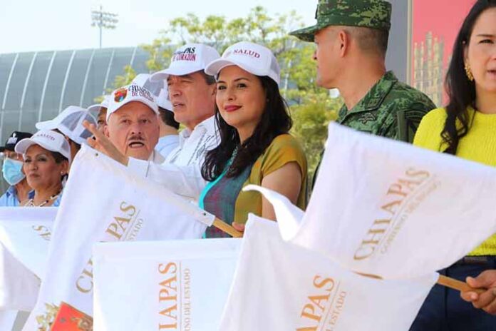 Tuxtla Gutiérrez Chiapas a 19 de junio de 2023.- La diputada Verónica Alcázar Cordero presidente de la Comisión de Salubridad y Asistencia en el Congreso del Estado acompañó al gobernador del estado Rutilio Escandón Cadenas al Arranque de los Convoyes para el Fortalecimiento de la Atención Médica Móvil.