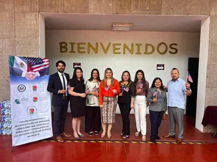En este marco, Clare Murphy Konrad, subdirectora de la Sección Visas de la Embajada de los Estados Unidos de América en la Ciudad de México, junto a su equipo de colaboradores, compartió información y capacitación a los asistentes sobre trámites y servicios consulares, el proceso para obtener las Visas B1, B2, F1, M1, J1, H2 y TN, así como pormenores del Programa DOCUMÉNTATE, que ofrece la Sección Consular del Gobierno de los Estados Unidos de América a través de su Embajada y consulados.