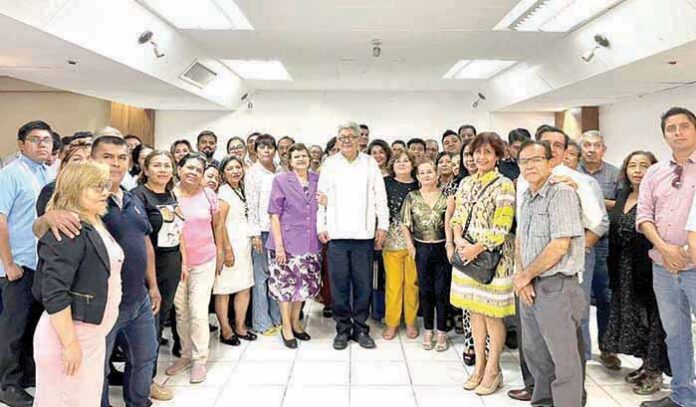 Tapachula, Chiapas; 16 de Septiembre de 2023.- En el marco de una reunión con integrantes del Sindicato de Trabajadores de la Educación (SNTE) y de la Federación Democrática de Sindicatos de Servidores Públicos (FEDESSP) de sus delegaciones en Chiapas, Plácido Morales Vázquez, magistrado presidente del Tribunal Federal de Conciliación y Arbitraje (TFCA), reconoció la buena voluntad de los dirigentes nacionales, maestro Alfonso Cepeda y maestro Agustín Avilés, respectivamente, en el avance de la nueva Reforma Laboral, impulsada por el presidente de la República, Andrés Manuel López Obrador.